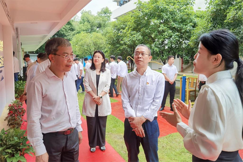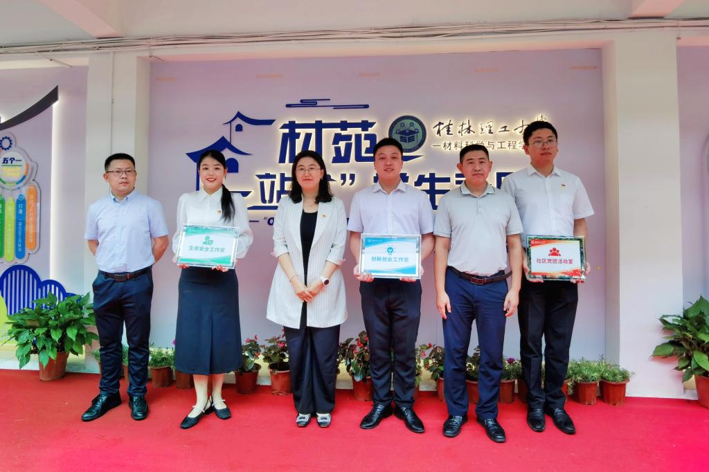 随后,学校党委学生工作部(学生工作处)部(处)长冯广辉和材料科学与工程学院党委书记梁军共同为材苑“一站式”学生社区揭牌;潘思伊、宋玉辉、雷绍湖为社区党团活动室、创新创业工作室、生命安全工作室等首批入驻队伍授牌;最后,黎贞崇一行在工作人员的引导下参观了材苑“一站式”学生社区。