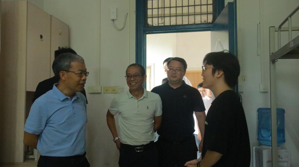 黎贞崇副校长和学院领导在学生宿舍与学生亲切交谈