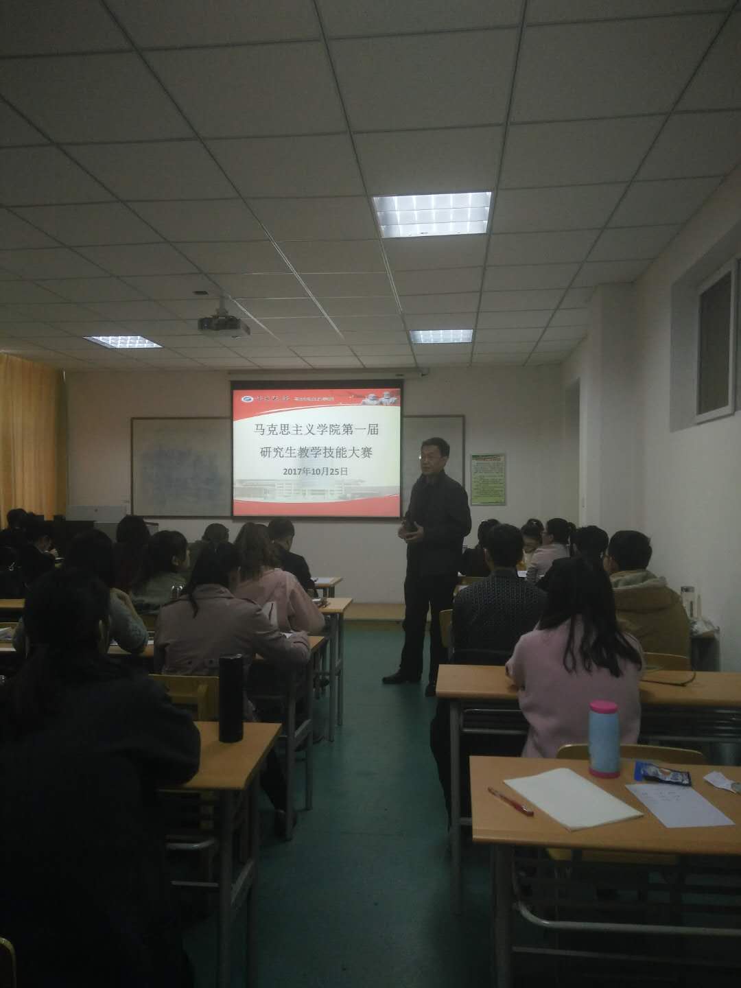 为了促进我院研究生在学习、研究、教学等方面的综合发展,提升学院研究生的综合素质,宁夏大学马克思主义学院第一届研究生教学技能大赛在2017年10月25日上午8:30于研究生楼509教室举行,共有11位同学参加比赛。学院李斌院长、赵勤书记、白宁芳老师、范映渊老师、党锐锋老师、马越老师、孙银东老师参加大赛并担任评委,马克思主义学院全体研究生进行了学习与观摩。