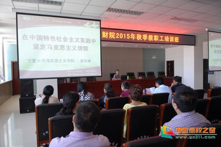 2015年8月28日下午,宁夏财经职业技术学院邀请我院副院长党锐峰副教授在图书馆三楼报告厅作题为《在中国特色社会主义实践中坚定马克思主义信仰》专题讲座。讲座由宁夏财经职业技术学院党委副书记吕周红主持。学院领导班子及全体教职工聆听讲座。