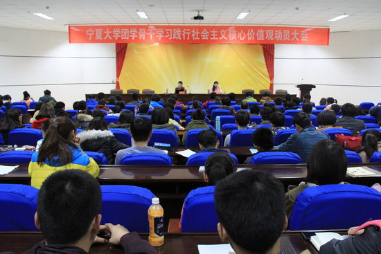 2014年3月6日晚,宁夏大学校团委邀请我院副教授白宁芳老师在文科大楼东报告厅为团学干部作“信仰的力量——构建社会主义核心价值观的意义”专题讲座。宁夏大学校学生会、学生社团联合会、志愿者协会及各学院学生会主席团300余名团学干部聆听了讲座。宁夏大学校团委副书记马慧主持讲座。