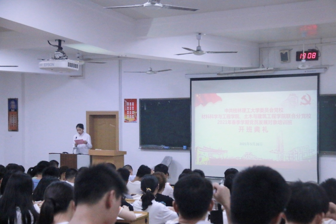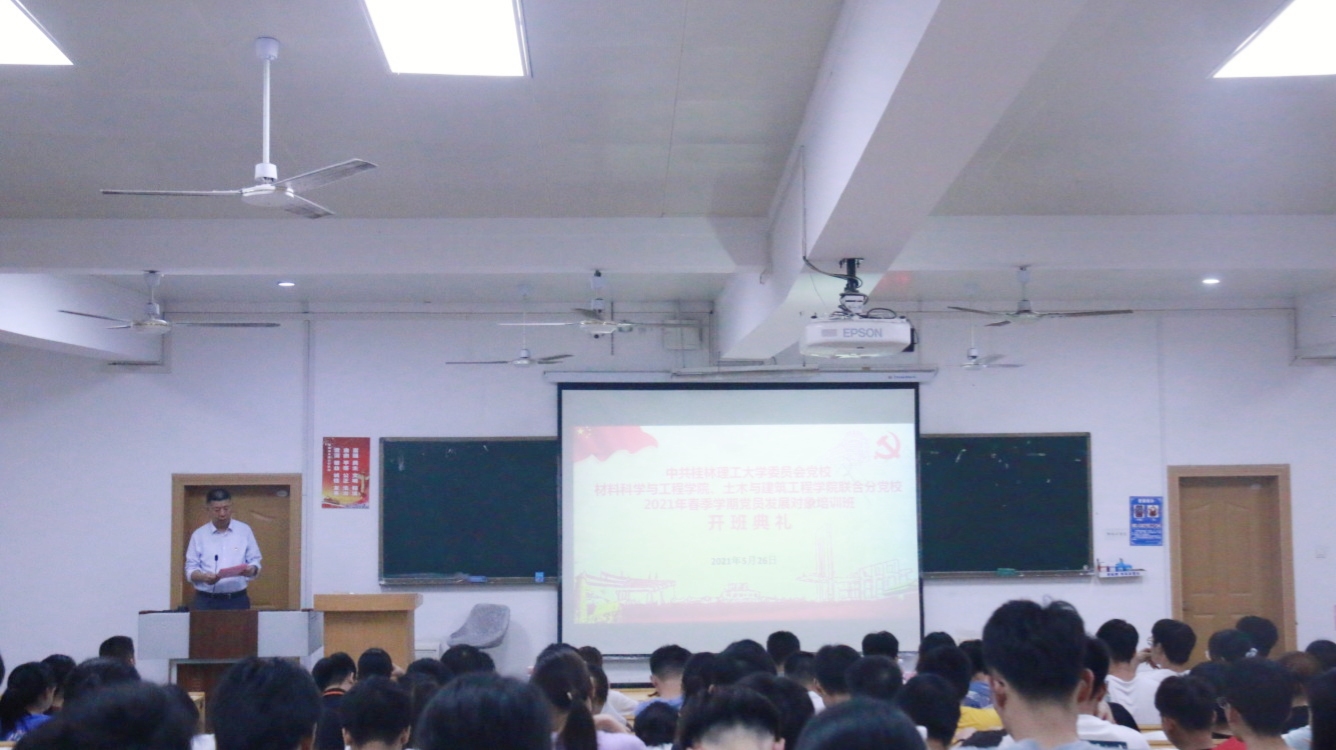 2021年5月26日晚,材料科学与工程学院、土木与建筑工程学院联合分党校2021年春季学期党员发展对象培训班开班典礼在屏风校区教九楼201教室顺利举行。材料科学与工程学院分党校校长、学院党委书记李治同志,材料科学与工程学院分党校教务员李俊俊同志,土木与建筑工程学院分党校教务员经玲同志以及201名党员发展对象参加了本次培训班开班典礼,开班典礼由材料科学与工程学院分党校教务员李俊俊同志主持。