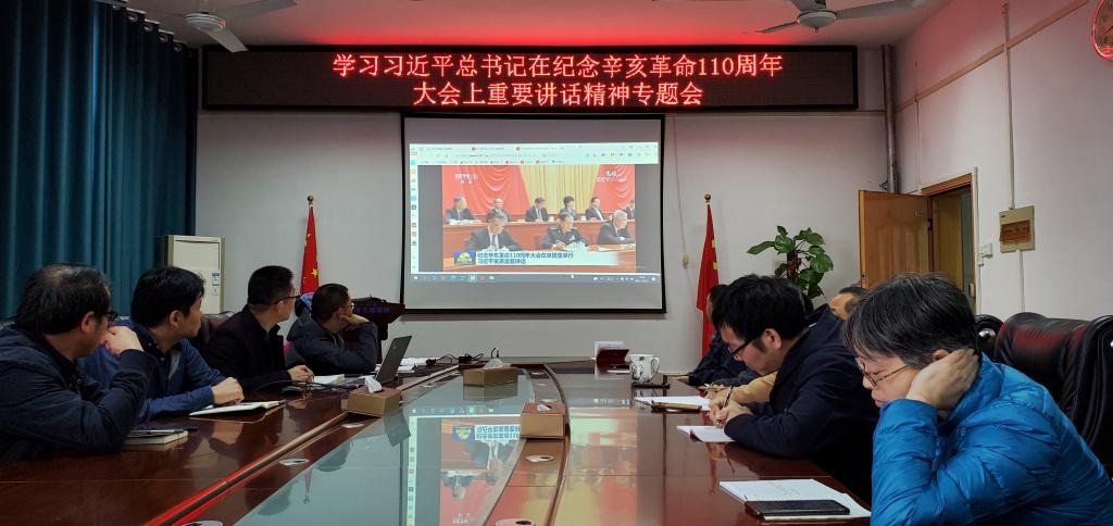 全体参会人员,通过观看10月9日习近平总书记在纪念辛亥革命110周年大会上的讲话实况录像,共同聆听学习大会重要讲话,重温伟大的辛亥革命精神。同志们相互分享交流辛亥革命的历史知识,踊跃发言,相互补充,进一步激发同志们发扬先辈为振兴中华而矢志不渝的崇高精神。面临新形势、新任务、新要求,我们要深刻学习革命先辈的爱国主义精神,更好地继承先辈的遗志,切实提高政治判断力、政治领悟力、政治执行力,努力工作、不懈奋斗,为实现中华民族伟大复兴的中国梦而努力奋斗。