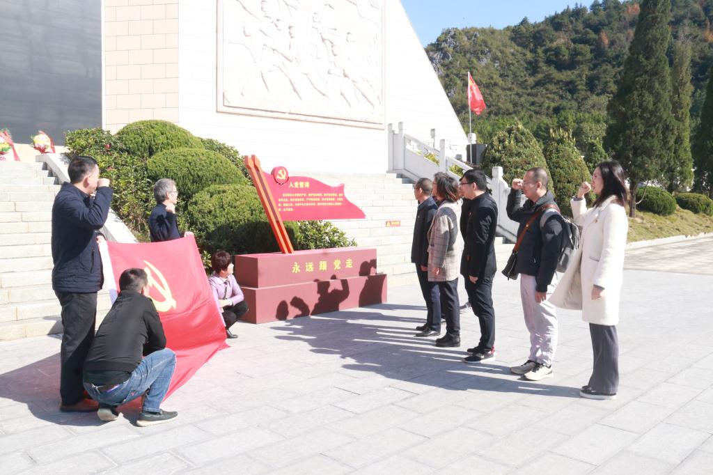 在学院党委书记梁军同志的领誓下,全体党员同志面对烈士墓,面向党旗,举起右手,重温入党誓词。党员同志宣誓慷锵有力,用声音告慰革命先烈,将牢记初心使命,走好新时代长征路。