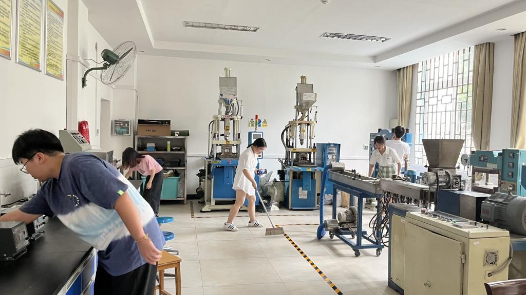 毕业生党员清扫实验室志愿服务活动现场
