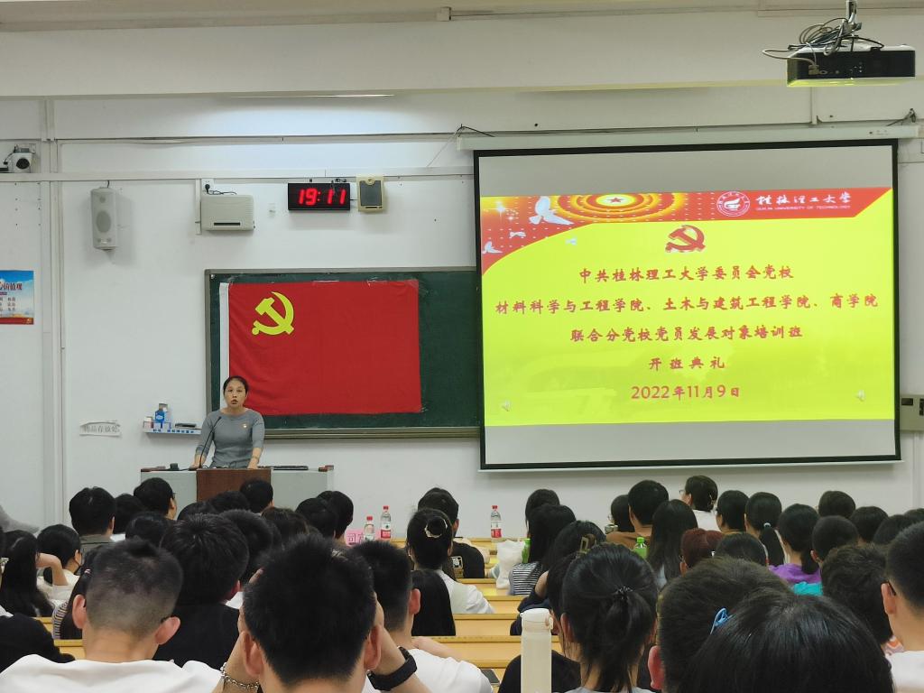 为深入学习贯彻习近平新时代中国特色社会主义思想和党的二十大精神,切实提高党员发展质量。11月9日晚,材料科学与工程学院、土木与建筑工程学院、商学院联合分党校2022年秋季学期党员发展对象培训班开班典礼在屏风校区9607教室顺利举行。土木与建筑工程学院分党校副校长、学院党委副书记唐丽华同志,材料科学与工程学院分党校教务员李俊俊同志,商学院分党校教务员庞如雪同志以及162名党员发展对象参加了本次培训班开班典礼,开班典礼由材料科学与工程学院分党校教务员李俊俊同志主持。