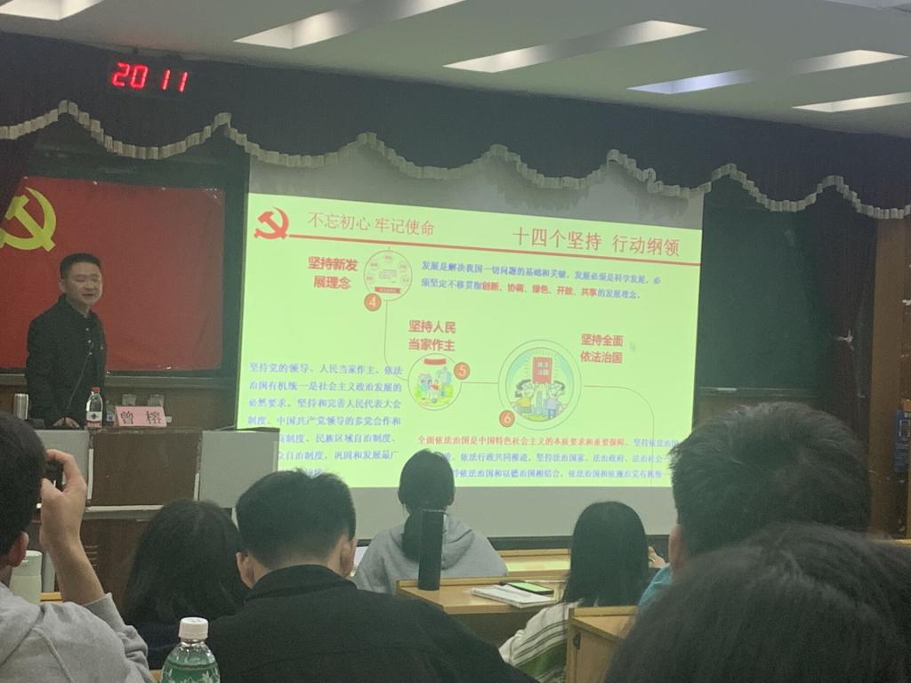 为深入学习贯彻习近平新时代中国特色社会主义思想和党的二十大精神,进一步强化大学生党的基本知识教育,不断提升发展党员质量。11月15日晚上,土建学院党委书记曾榕同志在屏风校区9401教室为联合分党校发展对象培训班学员讲授本次专题党课,162名学员参加党课。