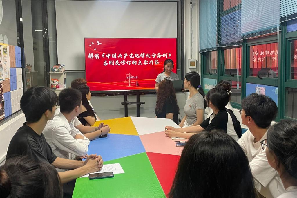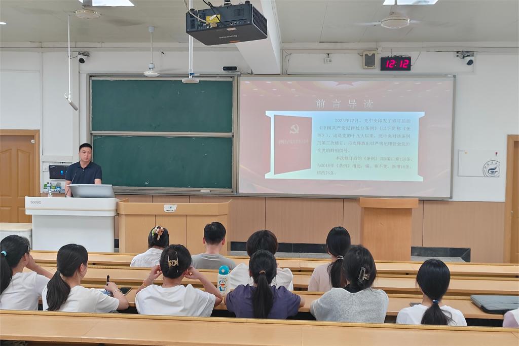 为深入学习贯彻习近平总书记关于党纪学习教育的重要讲话和重要指示精神,认真学习新修订的《中国共产党纪律处分条例》,增强党支部的政治功能和组织功能,强化师生党员纪律意识、提高党性修养,做到学纪、知纪、明纪、守纪,以严明的纪律确保全党自觉同以习近平同志为核心的党中央保持高度一致,统一思想、统一行动,知行知止、令行禁止,形成推进中国式现代化的强大动力和合力。2024年4月17日至4月30日,学院党委所属14个师生党支部接续开展党纪学习教育集中学习会。