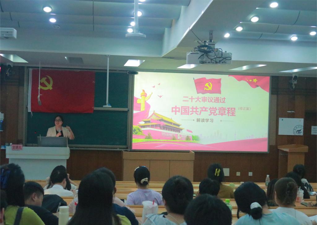为深入学习贯彻习近平新时代中国特色社会主义思想和党的二十大精神,提高预备党员党性修养,坚定信仰信念信心。5月23日晚,商学院分党校校长、党委书记白凌婷在9401教室为屏风校区联合分党校第二十七期预备党员培训班讲题为《中国共产党章程》的专题党课。联合分党校154名学员参加,党课由联合分党校教务员李俊俊主持。