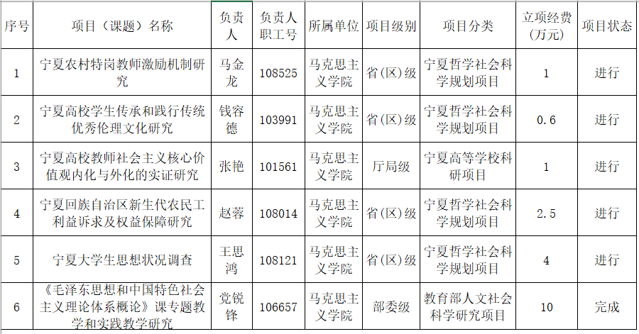 宁夏大学2015年度科研成果【纵向科研项目】统计表(社科类) 1