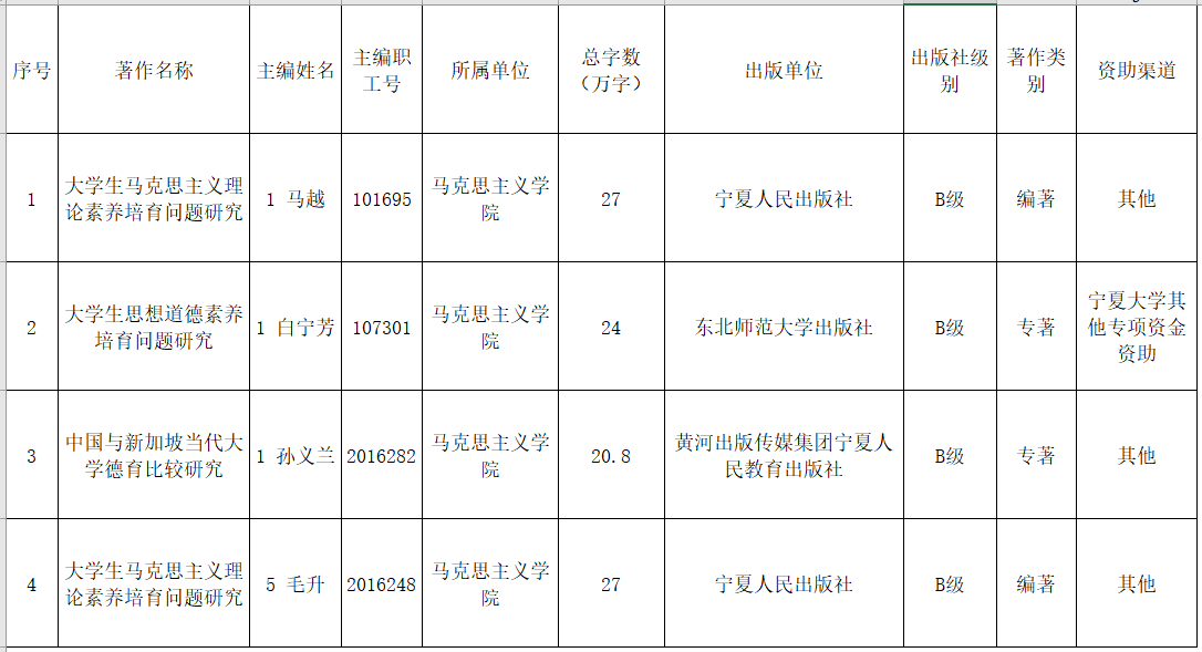 宁夏大学2017年度科研成果【科技著作】统计表(社科类) 1