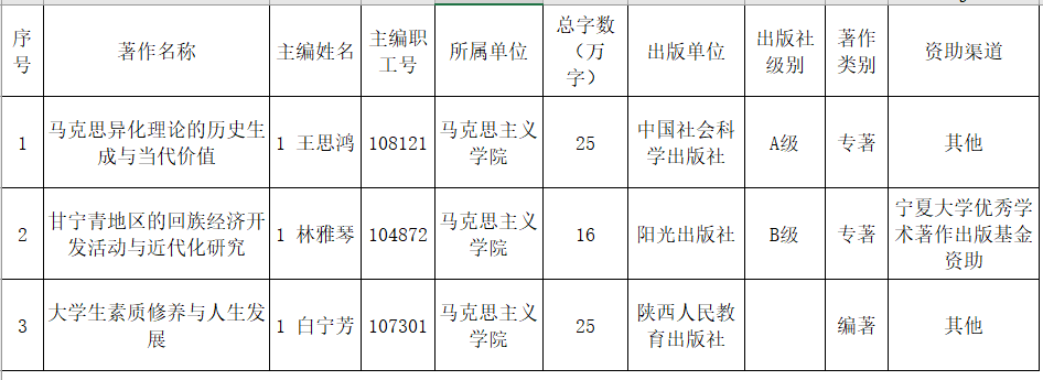 宁夏大学2016年度科研成果【科技著作】统计表(社科类) 1