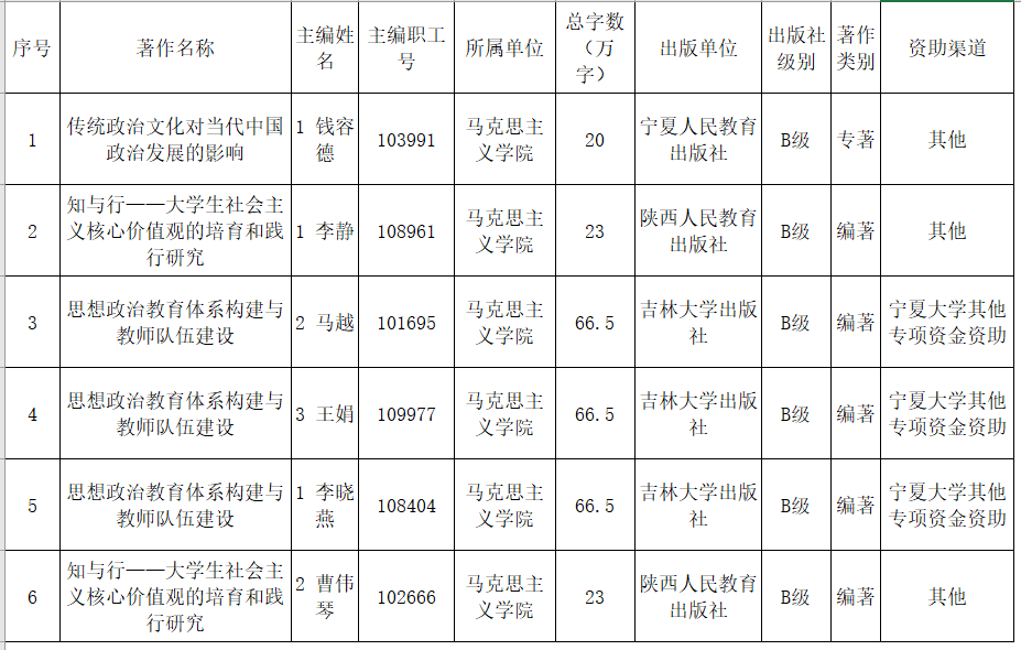 宁夏大学2015年度科研成果【科技著作】统计表(社科类)