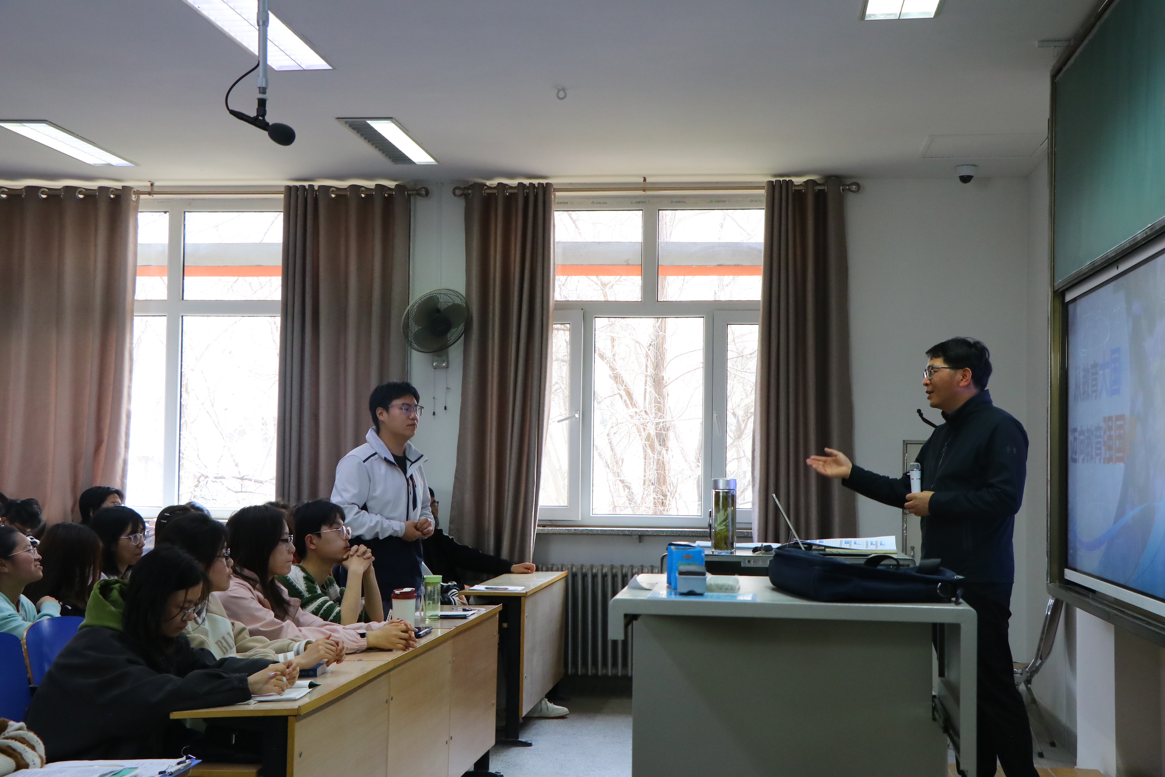 在文萃一教131教室,李星带着同学们回顾了宁夏大学六十七载办学历程,从“以坚韧不拔的勇气在曲折中谋发展”“以敢为人先的魄力在改革中求突破”“以赶超一流的姿态在机遇中赢未来”三个方面,为同学们深情讲述了宁夏大学从“荒漠戈壁上奋起”到“迈向高质量发展”的蜕变,用以小见大、深入浅出的方式阐释了为什么要建设教育强国、建设什么样的教育强国、怎样建设教育强国的问题。他希望同学们能够珍惜学习机会,不负青春韶华,练就过硬本领,投身强国建设,在青春的火热实践中努力成长为德智体美劳全面发展的社会主义合格建设者和可靠接班人。