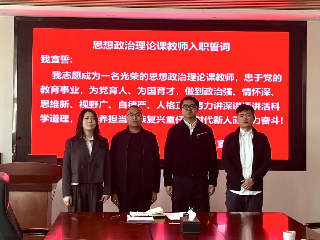 为强化思政课新入职教师的身份认同、使命担当与责任意识,引导青年教师坚定理想信念、明确育人使命,2025年11月19日,马克思主义学院隆重举行新入职教师宣誓仪式。学院领导班子成员、全体教师及4名新入职教师出席仪式。