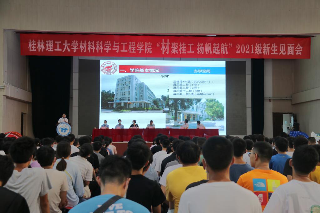9月12日下午,我院在雁山校区旧体育馆召开2021级本科新生见面会,学院党委书记李治,学院院长、重点实验室主任龙飞,学院党委副书记、纪委书记徐时,重点实验室副主任刘来君,学院副院长杨超、王茗、张瑞,院长助理黄孝华出席会议,会议由学院团委书记、2021级新生辅导员赵思聪主持,各教研室主任、新生班主任和2021级全体本科新生参加会议。