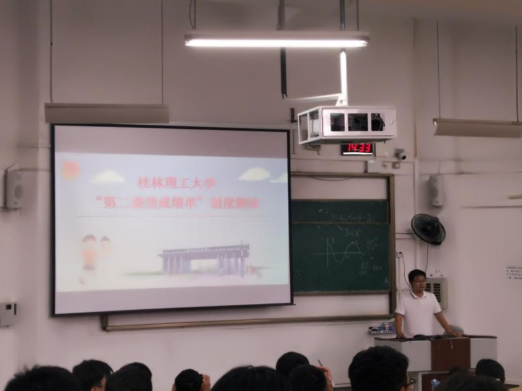 为了帮助2021级新生更好的了解有关第二课堂学分管理制度,以及“到梦空间”APP的使用方法,并且清楚第二课堂成绩对学业以及个人发展的重要性,更早地熟悉到梦空间上参加活动以及学分获取的相关事宜,丰富自己在学习之余的课外活动。我院于9月30日下午,在雁山校区05101和05102教室分别由学院团委副书记(兼)卢桂盛老师和新生辅导员尹贤彬老师为2021级全体新生进行“第二课堂成绩单”培训。