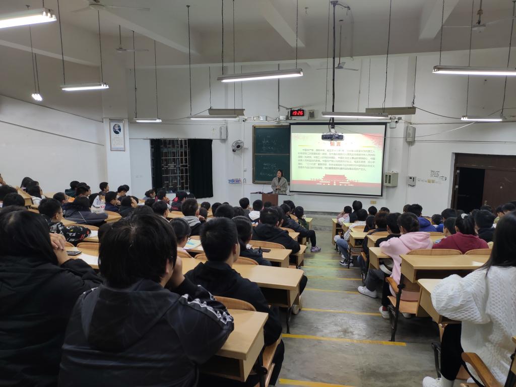 会上,徐时老师以党史发展脉络为主线,首先介绍了中国共产党在各个历史时期的关键节点和重大事件。接着,她为同学们讲解了入党流程,呼吁同学们积极向党组织靠拢。最后,她以习近平总书记对新时代中国青年的六点要求为切入点,要求同学们做到见贤思齐,时刻以党员的标准严格要求自己。
