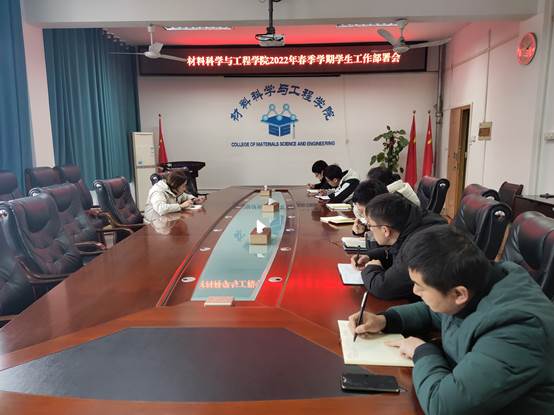 为做好2022年春季学期学院学生工作,2月18日下午,材料科学与工程学院在屏风校区2308会议室召开2022年春季学期学生工作会议,学院学工办全体人员参加会议,会议由学院党委副书记徐时主持。