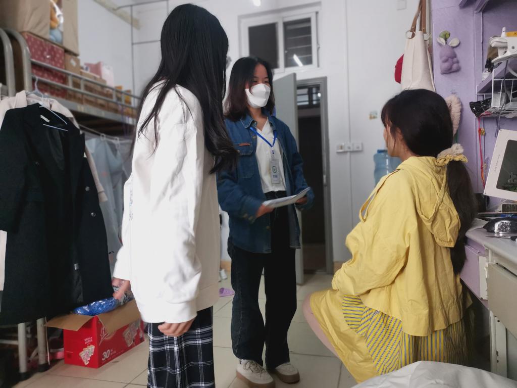 宿舍自我健康观测期间,老师们通过走访了解学生近期的生活状况,嘱咐学生要严格落实学校的疫情防控工作的相关要求,同时我院知行社,积极联系宿舍长,宣传防疫政策,并在每层楼设有楼层长两位,督促大家做好防护,提醒大家在宿舍要养成良好的生活学习习惯,把时间和精力更多的用在学习上;旨在为学生提供良好的服务工作。