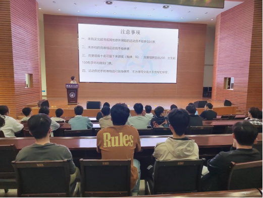 会议伊始,体育部负责人就比赛前注意事项、参赛要求、长跑注意事项、比赛时间及行程安排五个方面进行了详细说明,同时详细介绍了本次校园马拉松的全程路线,展示了路线的草图,使运动员更直观地了解场地安排。接着卢桂盛老师对全体运动员强调了三个注意事项,一是要注意安全,提醒所有参赛的运动员必须都购买意外险,在比赛前一天一定要注意休息,保证充足的睡眠,在赛前要做好热身活动,在比赛中要注意个人健康状况,如出现不良反应及时调整;二是要服从指挥,听从安排,此次比赛参与人数较多,所有运动员需听从学校及学院的统一安排,以确保各项工作的顺利进行;三是要秉持安全第一,比赛第二的原则,在比赛过程中要注意个人及他人的安全,尊重自己,尊重对手,安全顺利的完成比赛。最后,卢桂盛老师结合自己参赛的相关经验与参会的同学进行了分享。