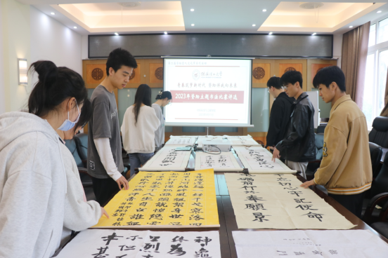 为大力宣传国家资助政策及成效,切实做好学生资助工作,讲好中国学生资助故事,激励我院广大受助学生奋发自强、立志成才、感恩回馈、报效国家,结合2023年学校“资助育人文化节”活动安排,5月12日,我院在屏风校区2304举办的“青春筑梦新时代 资助伴我向未来”资助主题书法比赛现场评选暨书法展。