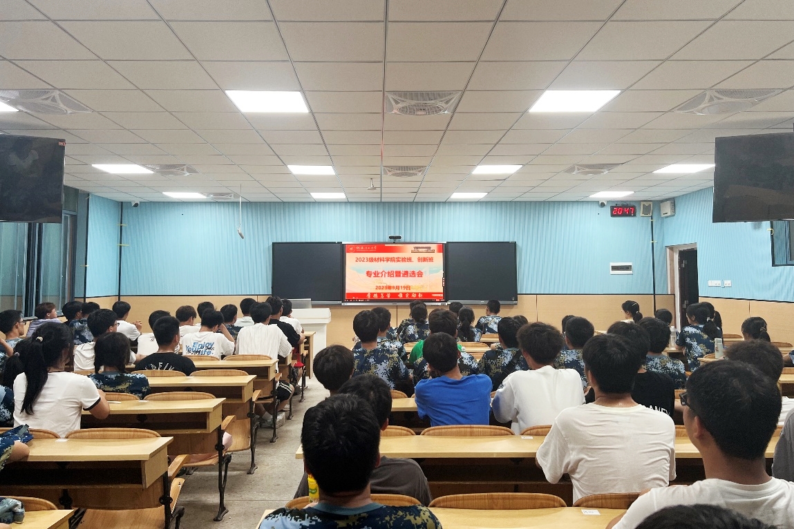 2023年9月20日,材料科学与工程学院2023级全体新生在雁山校区6栋教学楼参与了专业介绍会暨卓越工程师、拔尖创新人才遴选动员会,会议采取线上直播讲授、线下集中学习的形式进行,由学院副院长黄孝华教授主持,无机非金属材料工程教研室李优副教授、高分子材料与工程教研室李裕琪副教授进行专业介绍。