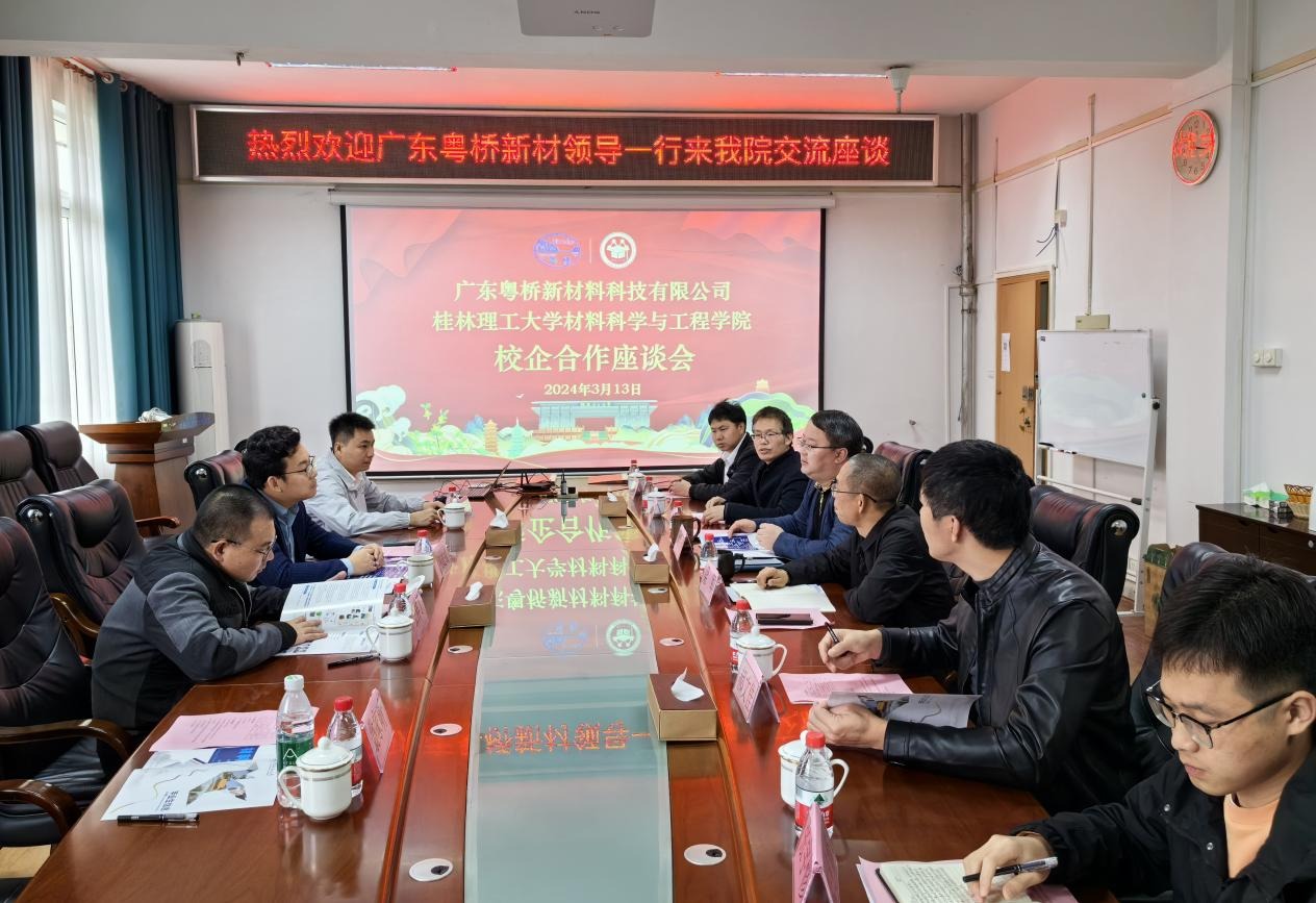3月13日上午,广东粤桥新材料科技有限公司总裁张枝成率队来我院考察交流。学院党委书记梁军、院长周焕福、党委副书记郝文佳、副院长黄孝华,学院对口专业教师代表出席座谈会,双方将围绕产学研合作、就业工作、平台共建与共享等领域开展深度合作,并就此签署了产学研框架合作协议。
