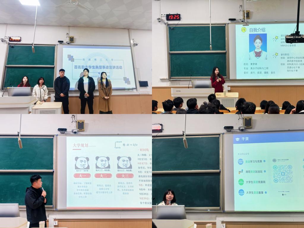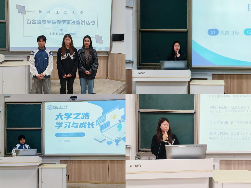 11月24日,材料科学与工程学院于雁山校区07319、04111教室举行了“成‘材’宣讲团”百名励志学生典型事迹宣讲会。本次活动以分享励志学生群体的成长历程为核心,旨在激发广大学子积极向上的精神风貌,彰显资助育人工作的显著成效。宣讲会由学生资助工作专职辅导员董子胜主持,国家励志奖学金获得者周利燊等六位同学、广西壮族自治区人民政府奖学金获得者苟海玲等三位同学进行了精彩宣讲,全体2024级本科生积极参与了此次活动。