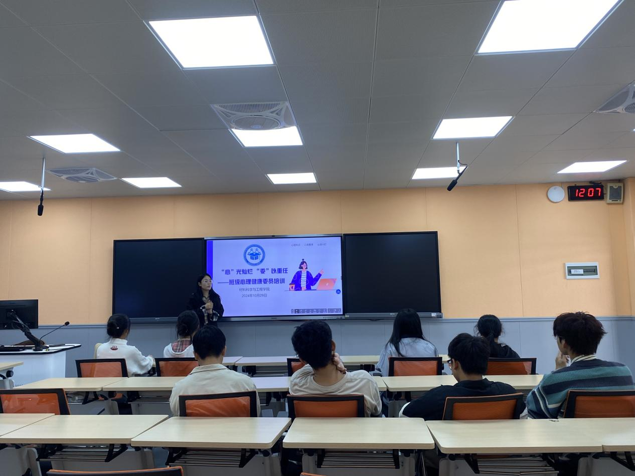 为进一步加强我院心理健康管理工作,增强学院心理骨干的心理健康知识和技能储备,提高工作胜任力,2024年10月29日,我院在雁山校区组织开展了心理骨干专题培训,此次培训由院心理健康教育专项工作负责老师唐丹婷主讲,雁山班级心理骨干线下参加,屏风班级心理骨干线上参加。