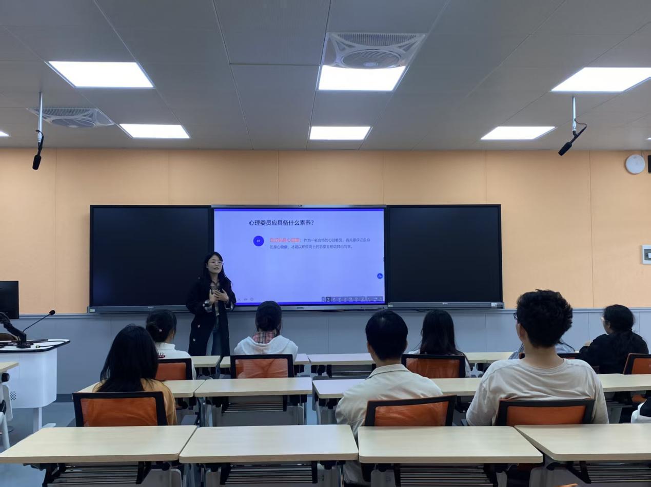 为进一步加强我院心理健康管理工作,增强学院心理骨干的心理健康知识和技能储备,提升工作胜任力,2025年10月22日,我院在雁山校区组织开展了心理骨干专题培训。此次培训由院心理健康教育专项工作负责老师唐丹婷主讲,雁山班级心理骨干线下参加,屏风班级心理骨干线上参加。