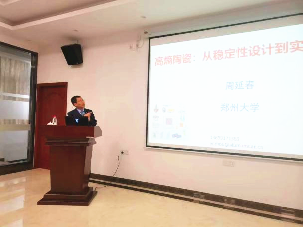 周延春教授深入浅出的介绍了高熵的概念、材料结构和性能特征。在报告中提出高熵陶瓷相关研究为材料设计和属性定制带来了新的机遇。与高熵金属不同,高熵陶瓷的晶体结构和电子结构的多样性为性能调整提供了广阔的空间。它除了具有增强,硬化和低热导率外,还具有大介电常数,高超离子电导率,严重的各向异性热膨胀系数,强电磁波吸收性等新特性。他还强调了材料处理、产物表征和特性预测方面面临的挑战,并细致地给出了面向不同军用和民用需求的高熵陶瓷设计方案。