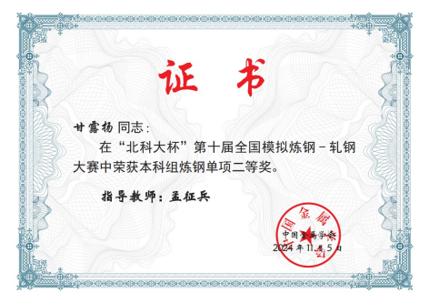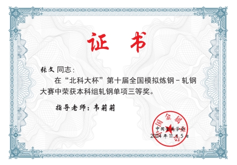 在我院老师精心指导下参赛队员凭借扎实的操作技能脱颖而出。经过紧张而激烈的角逐,我院参赛的参赛选手分别荣获高校组炼钢单项二等奖和高校组轧钢三等奖。