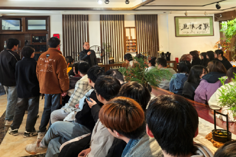 本次实习得到桂林玉华天宝公司的大力支持,企业不仅提供了专业直播场地、设备及鸡血玉实训样品,还邀请公司黄总、徐总亲临现场开展专项培训。两位老总结合多年珠宝行业营销经验,围绕鸡血玉材质特点、文化价值解读、直播话术设计、互动控场技巧及销售数据复盘等核心内容,通过案例分析、现场示范等方式为学生答疑解惑,针对性指导学生如何挖掘鸡血玉的地域特色与收藏价值,打造差异化直播内容,让学生快速掌握行业前沿营销技巧。实训过程中,学生们分组完成“选品——脚本设计——直播实操—— 复盘优化”全流程实战,展现了良好的专业基础与积极的学习态度,也在实战中提升了营销策划与执行能力。
