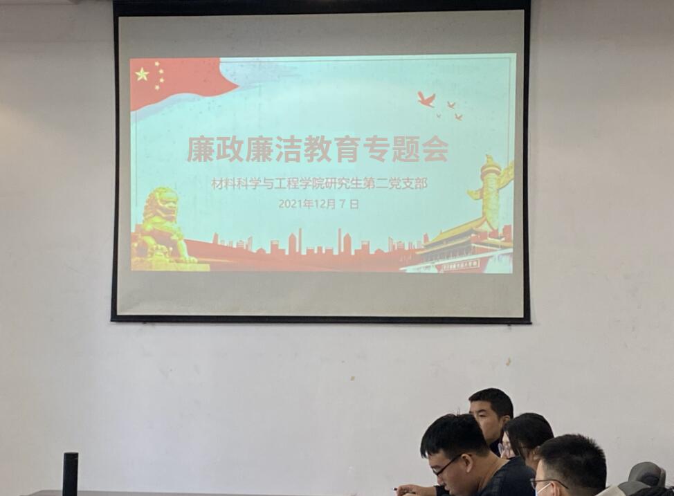 研究生第二党支部开展廉政廉洁教育专题会现场