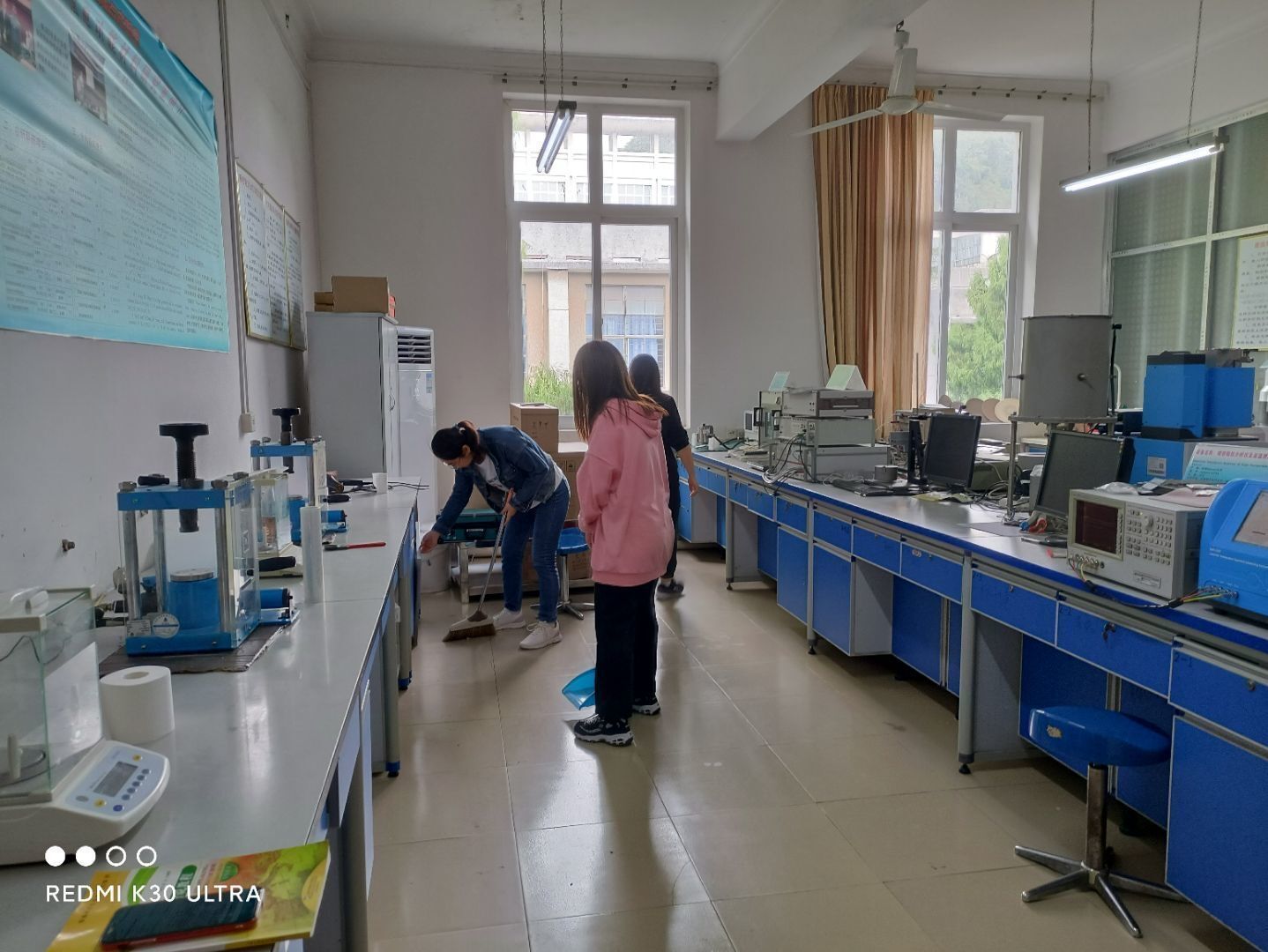 支部党员清洁美化实验室活动现场