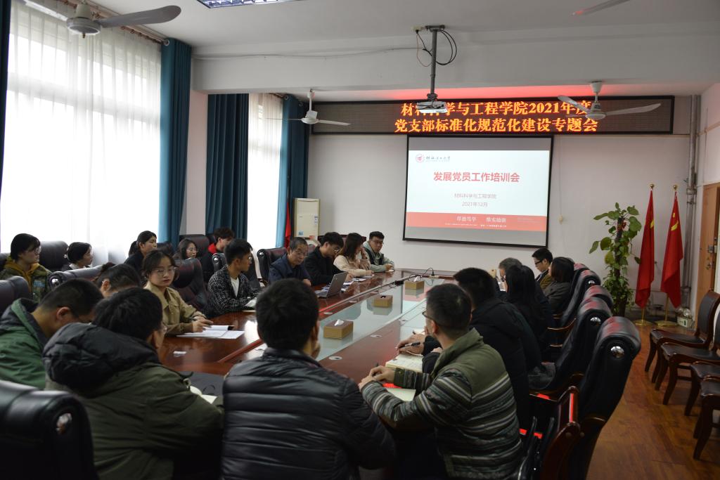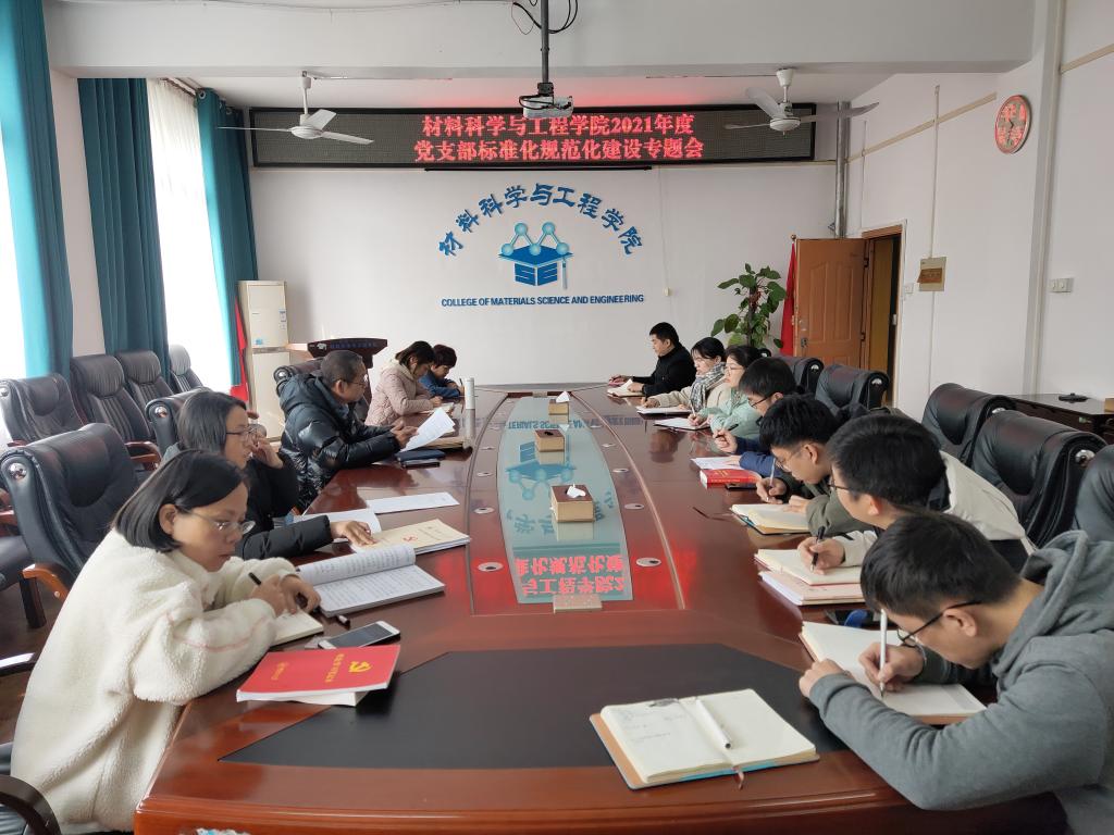 【党支部建设专题会】材料科学与工程学院召开2021年度党支部标准化规范化建设专题会(二)为进一步促进学院党委所属党支部标准化规范化建设,提升党支部组织生活质量,夯实基层党支部战斗堡垒作用。12月15日下午,学院党委在2308会议室召开2021年度党支部标准化规范化建设专题会。专题会由学院党委书记梁军同志主持,师生党支部全体支部支委参加。会上,梁军同志向参会人员详细深入讲解了《中国共产党发展党员工作细则》和《广西发展党员工作手册》,并从发展党员工作的重要意义、始终把政治标准放在首位等方面讲了专...2021-12-16 -