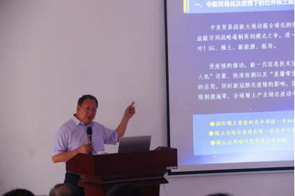 中铝广西有色稀土开发有限公司李兵党委书记、董事长一行应邀到我院做学术报告2022年5月26日下午,中铝广西有色稀土开发有限公司李兵党委书记、董事长、张亮玖生产部主管应邀到我院作学术报告,在我校屏风校区协同创新三楼会议室分别作了题为“全球稀土格局重构与中国稀土集团成立后的广西稀土发展思路”、 “稀土及应用”的学术报告,报告由学院院长龙飞教授主持,我院相关师生参加了此次报告会。党委书记、董事长李兵主要围绕中美贸易战及疫情下的世界稀土格局重塑、中国稀土集团的成立及其意义等多方面...2022-05-27 -