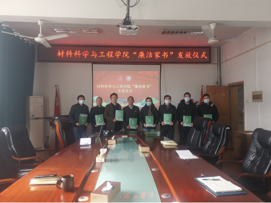材料科学与工程学院举办“廉洁家书”发放仪式12月6日,材料科学与工程学院在屏风校区2308举行“廉洁家书”发放仪式。学院党委书记梁军出席仪式并为学院副科级以上干部代表发放了“廉洁家书”。学院领导干部及副科级以上代表参加发放仪式。 会上,梁军书记向各位领导干部家属发出如下倡议:一要培育清廉家风,做“清廉家庭”的倡导者。引导家人坚持以德治家、以廉保家、以俭兴家;二要践行清廉家风,做“清廉家庭”的建设者。常吹“枕边风”,敢说“逆耳话”,算好“...2022-12-06 -