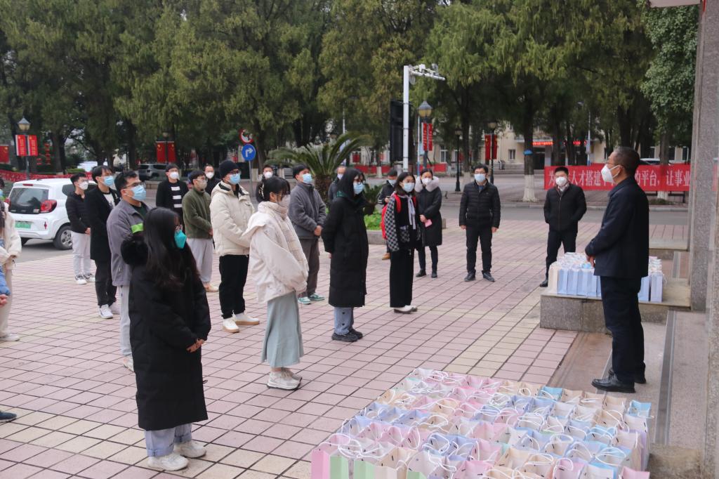 我院开展“‘研’途送温暖、心系考研生”暖冬活动为了鼓励我院考研学子积极迎考,增强考研信心,舒缓备考压力,我院于2022年12月20日下午在屏风校区2栋门前小广场开展2023届毕业生考研暖冬活动,学院党委书记梁军、院长龙飞、党委副书记徐时、副院长张瑞、各教研室主任、班主任以及学工办的辅导员们参加了此次活动,活动由学院党委副书记徐时主持。活动伊始,学院的领导老师为考研的学生代表送上学院精心准备的考研大礼包,礼包里面包含2个N95口罩、2颗棒棒糖、1瓶旺仔牛奶,1...2022-12-20