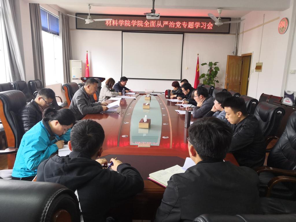 【党委中心组学习】材料学院党委中心组召开2021年全面从严治党工作会议暨党史学习教育专题会2021年4月8日下午,材料学院在屏风校区2308召开2021年全面从严治党工作会议暨党史学习教育专题会,落实学校2021年全面从严治党工作会议精神,对学院全面从严治党和党委年度工作做出部署。学院党委书记、党委委员、各支部书记参加会议,党委副书记徐时主持会议。学院党委副书记、纪委书记徐时传达了习近平总书记在十九届中央纪委五次全会上的重要讲话和五次全会精神、教育系统全面从严治党工作视频会议精神,并就学院2021年...2021-04-09